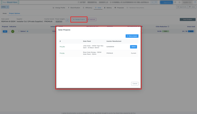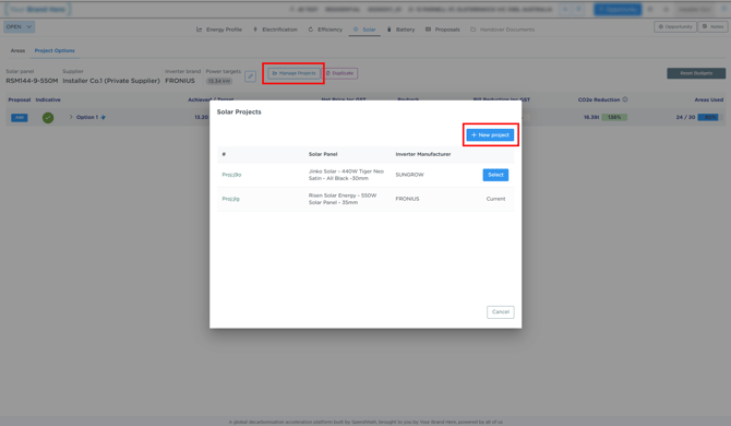 - Create a new solar project (within the same opportunity)