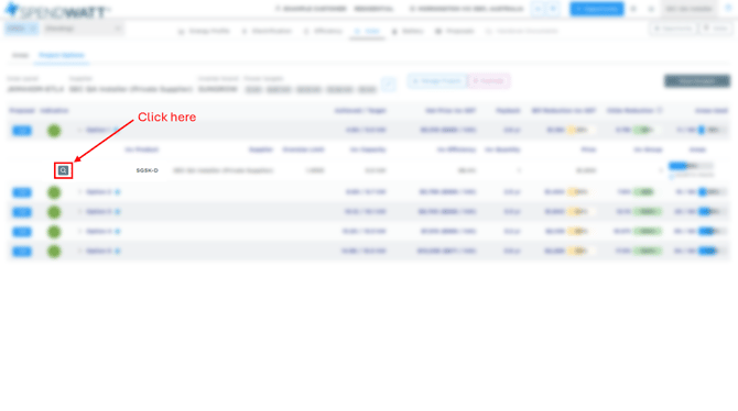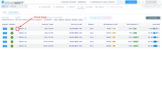 Expand the solar option you want to change the inverter in by clicking on the dropdown next to the text Option [x].