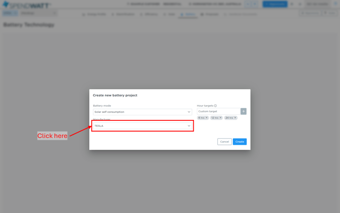 After the opportunity has been created click on Battery Technology tab in the top navigation bar.