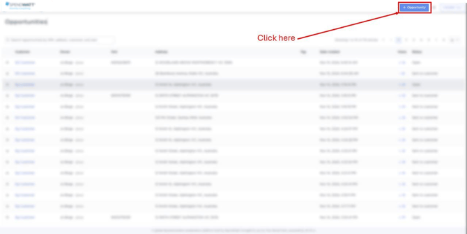 - Click the + Opportunity button in the top-right corner of the screen.
