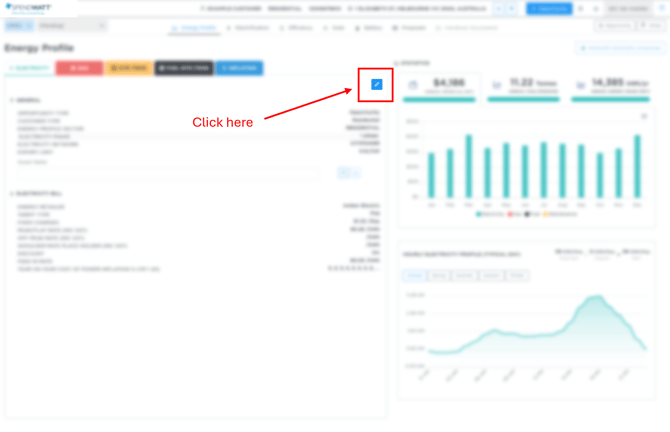 If electrification or energy efficiency will be included in the proposal, go to the relevant tabs and click the edit site icon to open the Energy Profile – Site Settings popup.