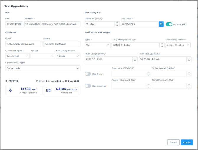 Enter electricity bill details, and then click Create