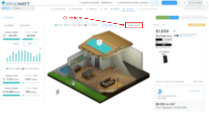 - In the 3D Proposal View select the solar option you want to do a solar panel layout for and then click on Solar Layout.