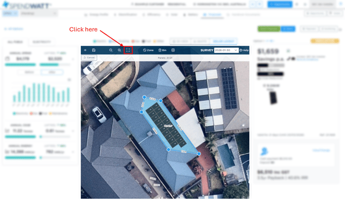 See here (when in the 3D view) if the solar option you have selected has a panel layout or not. If you select a solar option where there is no image in the below highlighted section, then repeat the above steps to create a solar panel layout screenshot for it accordingly.