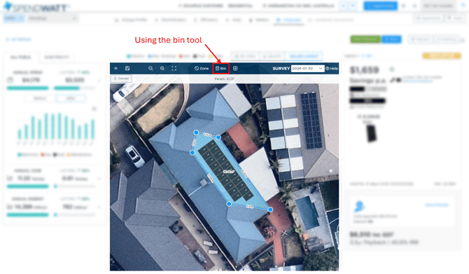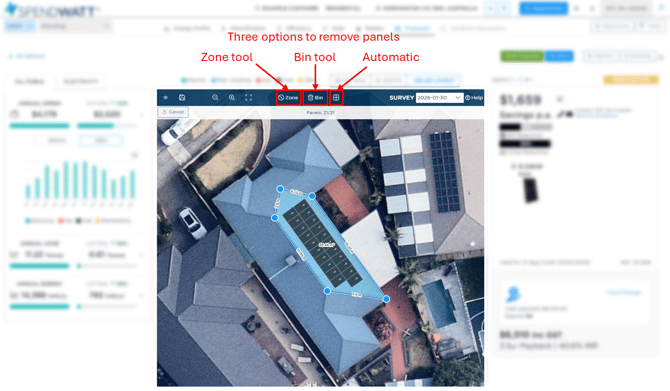 - Remove any panels if required (this is controlled by the selected size of the solar power option selected in the 3D view).