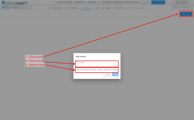 Note: Don't see anything or something is missing from the Existing Item dropdown? You will first need to add it to the customer energy profile.