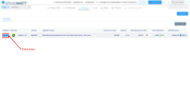 To see how to edit automated proposals once generated, a) click on the Efficiency tab, b) then click on the associated building Efficiency tab and c) see: How to Use the Budgets (Overview).