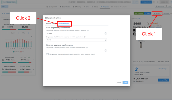 Navigate to the payment section within the proposal.